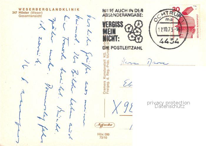 73080467 alte Postkarte Hoexter Weser Weserberglandklinik Fliegeraufnahme postalisch gelaufen Erhaltung siehe scans [FriedD77] KatCode: 11110005762020