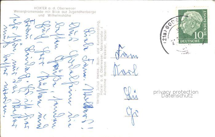 72006860 alte Postkarte Hoexter Weser Weserpromenade Jugendherberge Wilhelmshoehe postalisch gelaufen Erhaltung siehe scans KatCode: 11110005762020