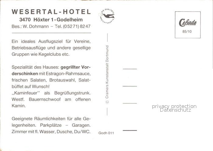 71996423 Hoexter Weser Wesertal-Hotel postalisch nicht gelaufen Erhaltung siehe scans KatCode: 11110005762020