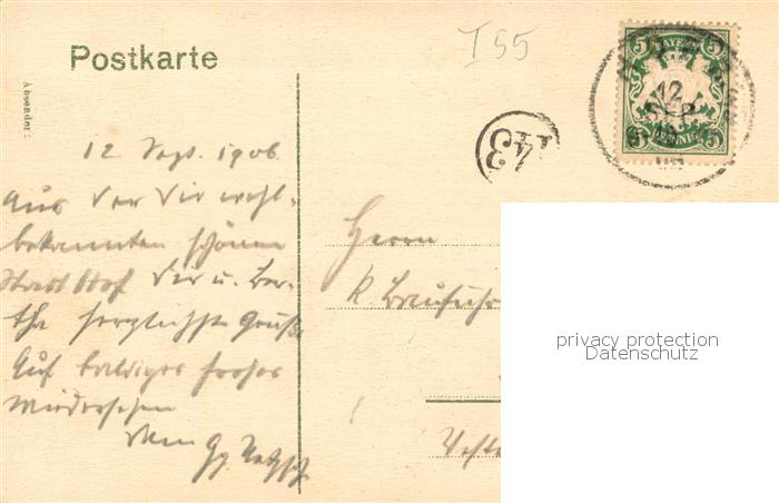 73779589 alte Postkarte Hof Cham Stadtpanorama mit Blick zur Kirche postalisch gelaufen Erhaltung siehe scans [FriedD77] KatCode: 11110009372116
