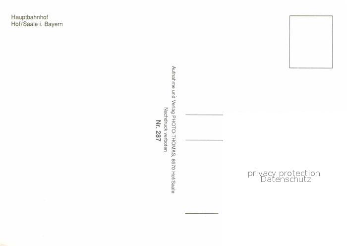 72646312 Hof Oberfranken Hauptbahnhof postalisch nicht gelaufen Erhaltung siehe scans [WerneD78] KatCode: 11110009471128