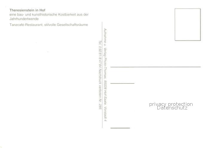 73050811 Hof Oberfranken Theresienstein Tanzcafe Restaurant postalisch nicht gelaufen Erhaltung siehe scans [KathaD81] KatCode: 11110009471128