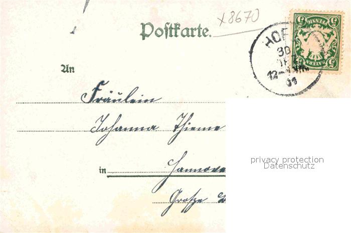 42883249 alte Postkarte Hof Saale postalisch gelaufen Erhaltung siehe scans [NatalD47] KatCode: 11110009464000