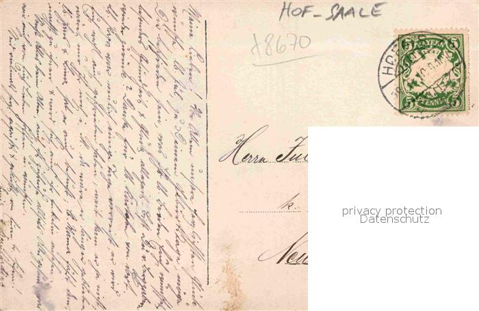 42883245 alte Postkarte Hof Saale postalisch gelaufen Erhaltung siehe scans [NatalD47] KatCode: 11110009464000