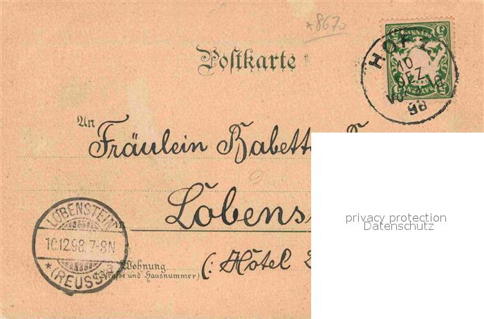 42882348 alte Postkarte Hof Saale postalisch gelaufen Erhaltung siehe scans [NatalD47] KatCode: 11110009464000