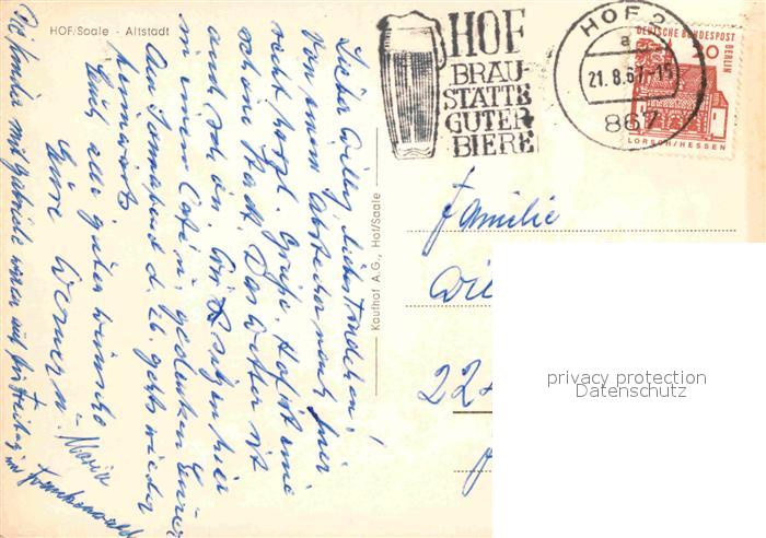 72821404 alte Postkarte Hof Saale Altstadt Kaufhaus Kirche postalisch gelaufen Erhaltung siehe scans [FriedD77] KatCode: 11110009464000