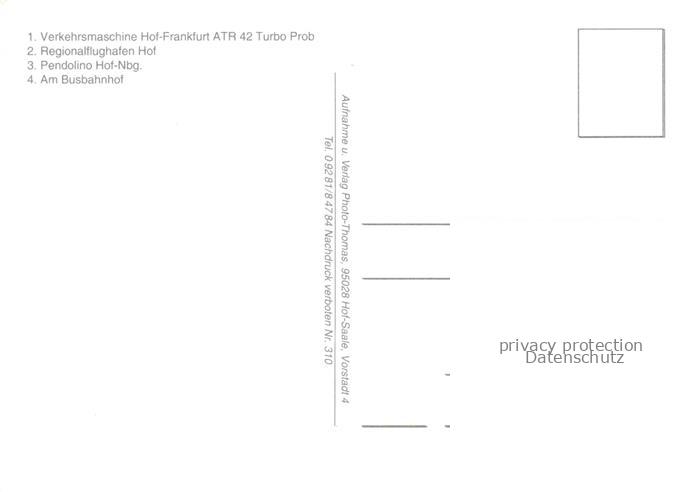 74044085 HOF SAALE Bayern Verkehrsflugzeug Regionalflughafen Hof Pendolino Am Busbahnhof postalisch nicht gelaufen Erhaltung siehe scans [WerneD78] KatCode: 11110009464000