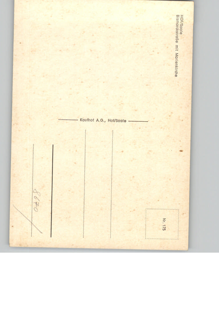 31169896 Hof Saale Bismarckstrasse postalisch nicht gelaufen KatCode: 11110009464000