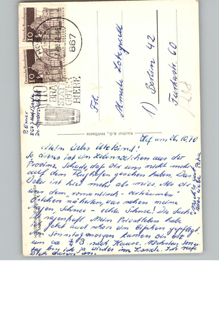 31171573 Hof Saale Bismarckstrasse postalisch nicht gelaufen KatCode: 11110009464000