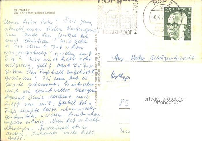 72148467 alte Postkarte Hof Saale Ernst Reuter Strasse postalisch gelaufen Erhaltung siehe scans KatCode: 11110009464000