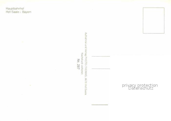 72662251 Hof Saale Hauptbahnhof postalisch nicht gelaufen Erhaltung siehe scans [FriedD77] KatCode: 11110009464000