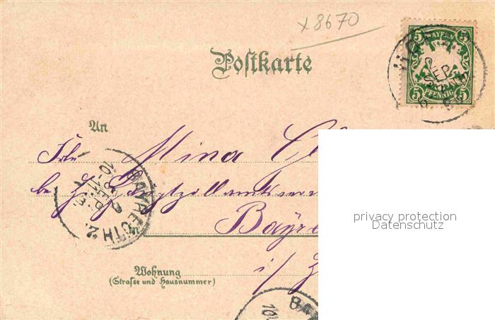 42883259 alte Postkarte Hof Saale Neuer Bahnhof Rathaus Theresienstein postalisch gelaufen Erhaltung siehe scans [NatalD47] KatCode: 11110009464000