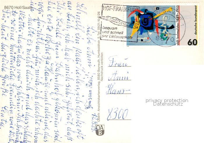 73175312 alte Postkarte Hof Saale Rathaus Freiheitshalle Central Kauf Theresienstrasse postalisch gelaufen Erhaltung siehe scans [KathaD81] KatCode: 11110009464000