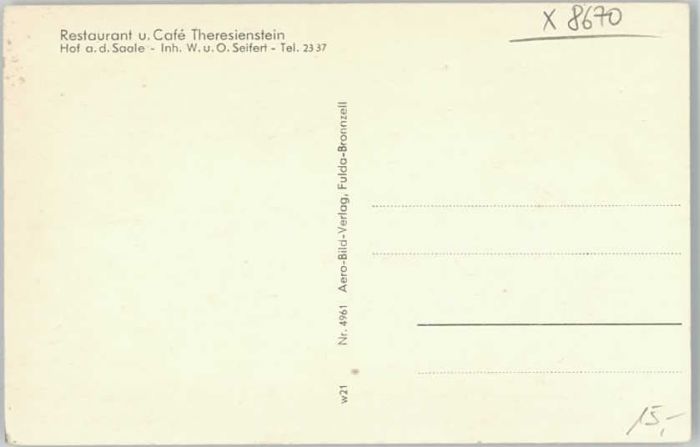 40238980 Hof Saale Restaurant Cafe Theresienstein Fliegeraufnahme KatCode 11110009464000