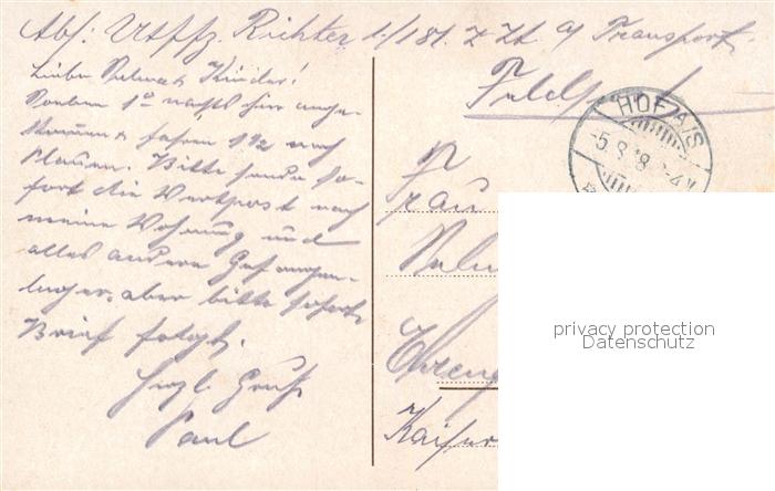 43507084 alte Postkarte Hof Saale Restaurant Theresienstein postalisch gelaufen Feldpost – Stempel Erhaltung siehe scans [LiesaD40] KatCode: 11110009464000