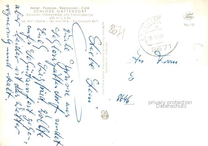 73874014 Hof Saale Schloss Gattendorf Gewoelbekeller Terrasse postalisch nicht gelaufen Erhaltung siehe scans [WerneD78] KatCode: 11110009464000