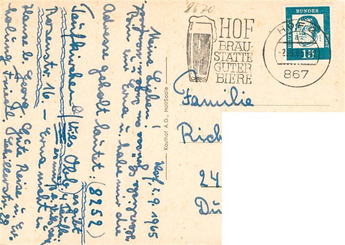 73917531 Hof Saale Strassenpartie Hochhaus Rathaus postalisch gelaufen Erhaltung siehe scans [FriedD77] alte Postkarte Frie Katcode 11110009464000