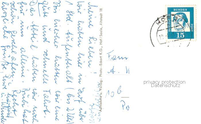 73779593 alte Postkarte Hof Saale Theresienstein Gaststaette postalisch gelaufen Erhaltung siehe scans [FriedD77] KatCode: 11110009464000