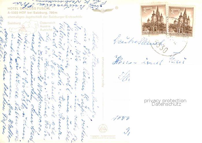 72850913 alte Postkarte Hof Salzburg Fliegeraufnahme Schloss Fuschl Fuschlsee Schafberg postalisch gelaufen Erhaltung siehe scans [NatalD47] KatCode: 11390323050319