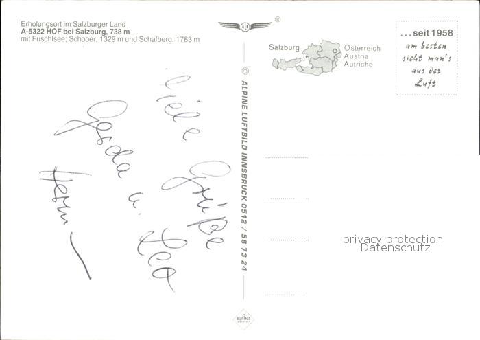 72495828 Hof Salzburg mit Fuschlsee Schober und Schafberg Fliegeraufnahme postalisch nicht gelaufen Erhaltung siehe scans KatCode: 11390323050319