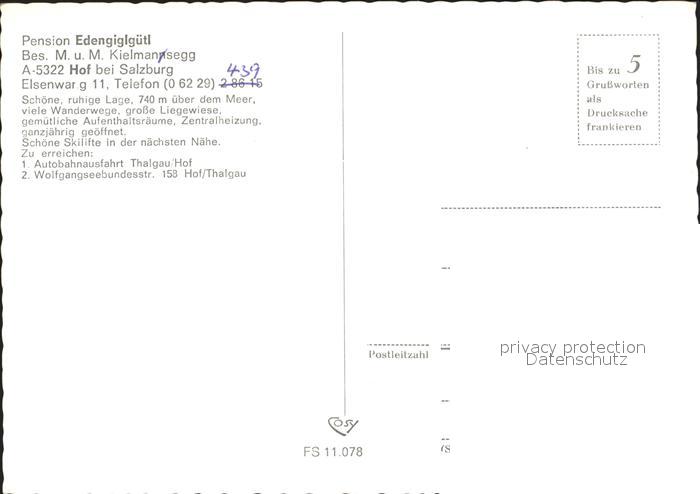 72013268 Hof Salzburg Pension Edengiglguetl bei Salzburg postalisch nicht gelaufen Erhaltung siehe scans KatCode: 11390323050319