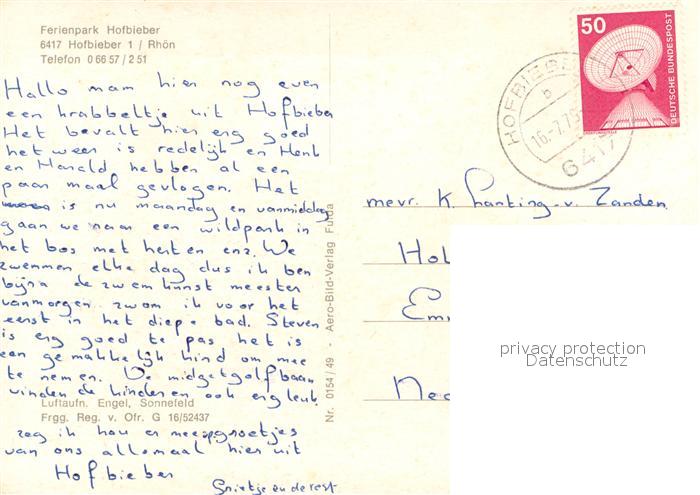 73721719 alte Postkarte Hofbieber Ferienpark Hofbieber Fliegeraufnahme postalisch gelaufen Erhaltung siehe scans [WerneD78] KatCode: 11110006631013