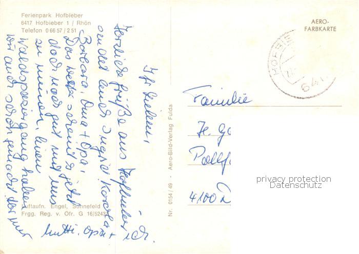 73813600 alte Postkarte Hofbieber Ferienpark postalisch gelaufen Fliegeraufnahme Erhaltung siehe scans [FriedD77] KatCode: 11110006631013