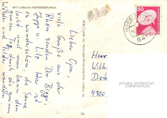 73813599 alte Postkarte Hofbieber Stadtbild mit Kirche Luftkurort Landschaftspanorama Schloss postalisch gelaufen Erhaltung siehe scans [FriedD77] KatCode: 11110006631013