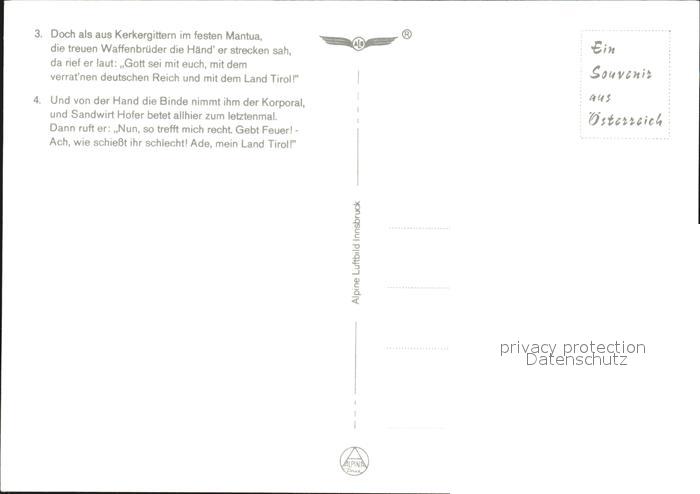 Hofer Andreas Lied postalisch nicht gelaufen Erhaltung siehe scans