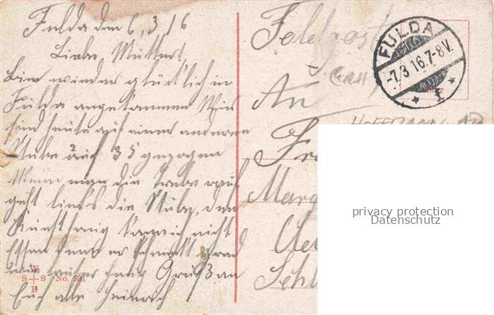 74079394 alte Postkarte HOFFMANN Ad. Militaria Kuenstlerkarte Marke Schuetzengraben WssW Nr. 931 postalisch gelaufen Erhaltung siehe scans [IrynaD87] KatCode: 22240000003200