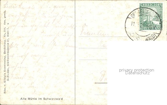 alte Postkarte Hoffmann Heinrich Alte Muehle im Schwarzwald postalisch gelaufen Erhaltung siehe scans