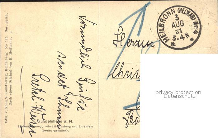 alte Postkarte Hoffmann Heinrich Gundelshaim am Neckar Schloss Hornegg Guttenberg Ehrenfels postalisch gelaufen Erhaltung siehe scans