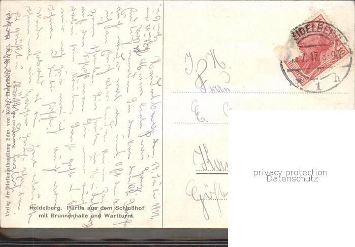 alte Postkarte Hoffmann Heinrich Heidelberg Schlosshof-Partie Brunnenhalle Wartturm postalisch gelaufen Erhaltung siehe scans