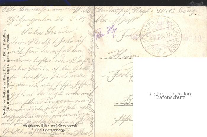 alte Postkarte Hoffmann Heinrich Hochbarr Geroldseck Brotschberg postalisch gelaufen Feldpost Erhaltung siehe scans