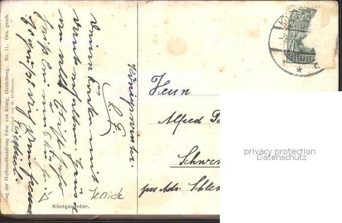 alte Postkarte Hoffmann Heinrich Koenigswinter Seitenraddampfer postalisch gelaufen Erhaltung siehe scans