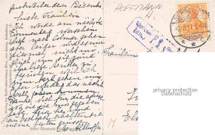 74019127 alte Postkarte HOFFMANN Heinrich Kuenstlerkarte Abtei Murbach beiSebweiler postalisch gelaufen Erhaltung siehe scans [IrynaD87] KatCode: 22241000001600