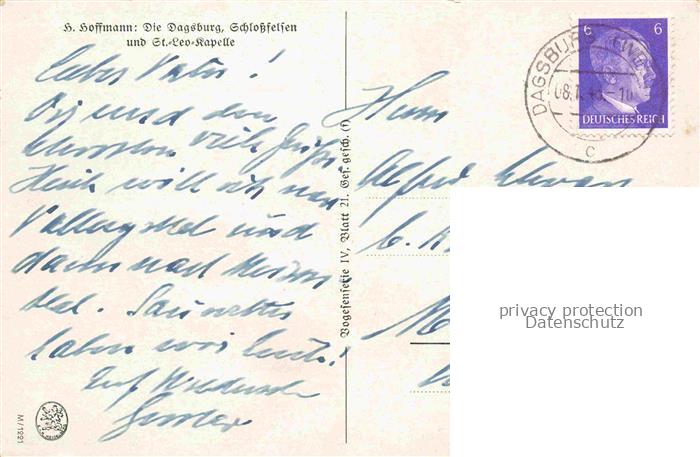 74020273 alte Postkarte HOFFMANN Heinrich Kuenstlerkarte Die Dagsburg Schlossfelsen St Leo Kapelle postalisch gelaufen Erhaltung siehe scans [IrynaD87] KatCode: 22241000001600