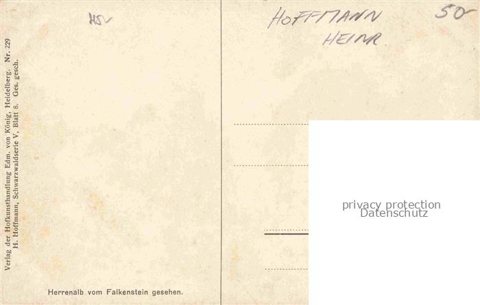 74019137 HOFFMANN Heinrich Kuenstlerkarte Herrenalb vom Falkenstein gesehen postalisch nicht gelaufen Erhaltung siehe scans [IrynaD87] KatCode: 22241000001600