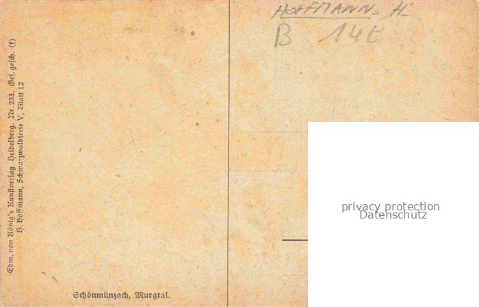 74019136 HOFFMANN Heinrich Kuenstlerkarte Schoenmuenzach Burgtal postalisch nicht gelaufen Erhaltung siehe scans [IrynaD87] KatCode: 22241000001600