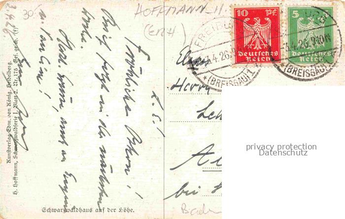 74011807 alte Postkarte HOFFMANN Heinrich Kuenstlerkarte Schwarzwaldhaus auf der Hoehe postalisch gelaufen Erhaltung siehe scans [IrynaD87] KatCode: 22241000001600