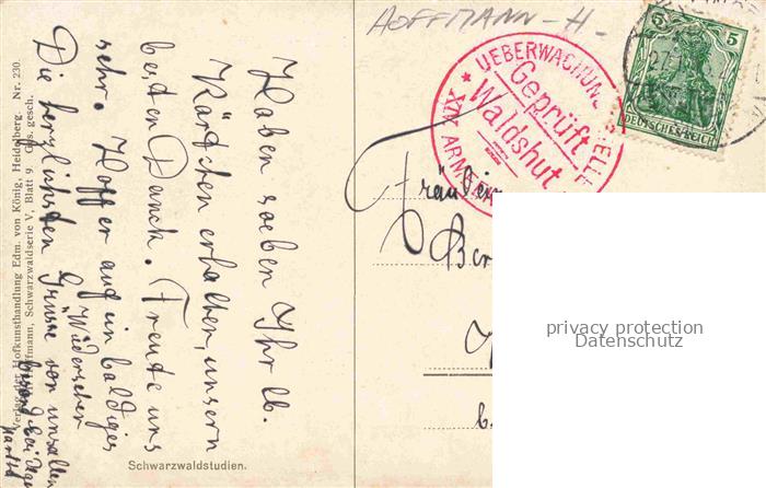 74019141 alte Postkarte HOFFMANN Heinrich Kuenstlerkarte Schwarzwaldstudien postalisch gelaufen Erhaltung siehe scans [IrynaD87] KatCode: 22241000001600