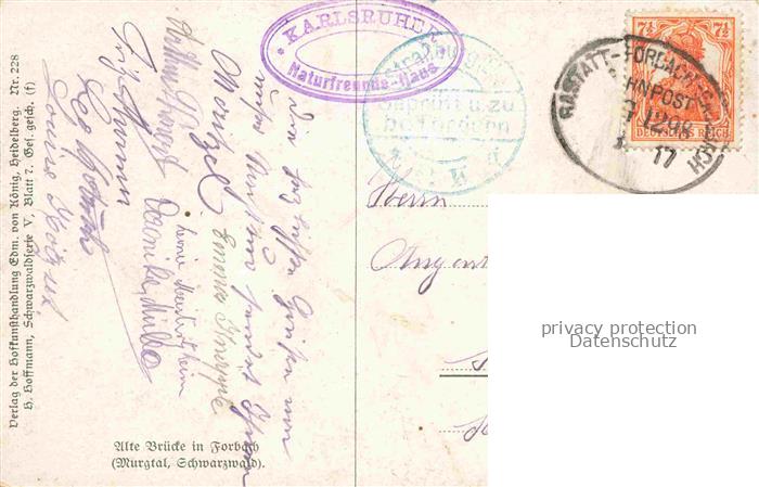 74005537 alte Postkarte Hoffmann Heinrich Kuenstlerkarte Sueddeutschland Alsace Alte Bruecke im Forbach postalisch gelaufen Erhaltung siehe scans [IrynaD87] KatCode: 22240000001600