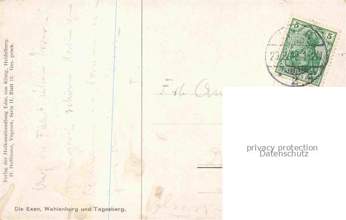 74006549 alte Postkarte Hoffmann Heinrich Kuenstlerkarte Sueddeutschland Alsace Die Exen Wahlenburg und Tagesberg postalisch gelaufen Erhaltung siehe scans [IrynaD87] KatCode: 22240000001600