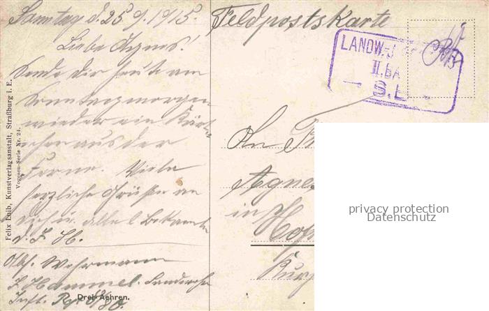 74006527 alte Postkarte Hoffmann Heinrich Kuenstlerkarte Sueddeutschland Alsace Drei Aehren postalisch gelaufen Erhaltung siehe scans [IrynaD87] KatCode: 22240000001600