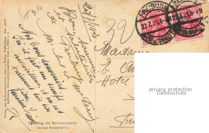 74005545 alte Postkarte Hoffmann Heinrich Kuenstlerkarte Sueddeutschland Alsace Fruehling Im Schwarzwald Junge Gutachterin postalisch gelaufen Erhaltung siehe scans [IrynaD87] KatCode: 22240000001600