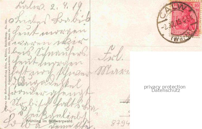 74006509 alte Postkarte Hoffmann Heinrich Kuenstlerkarte Sueddeutschland Alsace Fruehling im Schwarzwald postalisch gelaufen Erhaltung siehe scans [IrynaD87] KatCode: 22240000001600