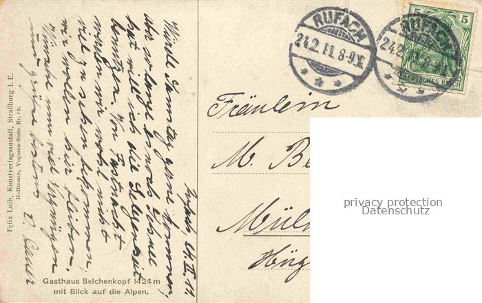 74006523 alte Postkarte Hoffmann Heinrich Kuenstlerkarte Sueddeutschland Alsace Gasthaus Belchenkopf Alpen postalisch gelaufen Erhaltung siehe scans [IrynaD87] KatCode: 22240000001600