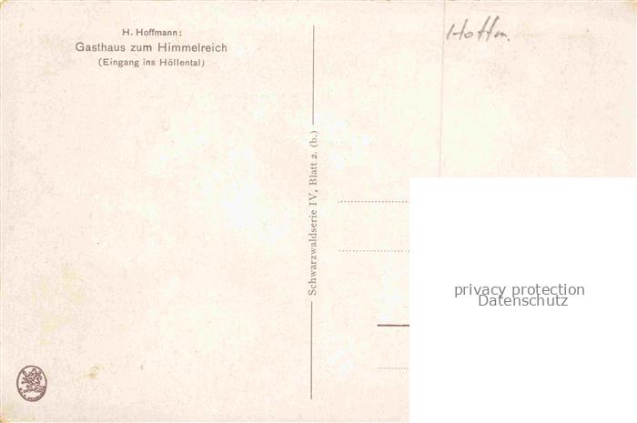 74006586 Hoffmann Heinrich Kuenstlerkarte Sueddeutschland Alsace Gasthaus zum Himmelreich Eingang ins Hoellental postalisch nicht gelaufen Erhaltung siehe scans [IrynaD87] KatCode: 22240000001600