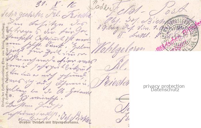 74006517 alte Postkarte Hoffmann Heinrich Kuenstlerkarte Sueddeutschland Alsace Grosser Belchen mit Alpenpanorama postalisch gelaufen Erhaltung siehe scans [IrynaD87] KatCode: 22240000001600