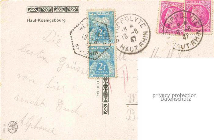74006579 alte Postkarte Hoffmann Heinrich Kuenstlerkarte Sueddeutschland Alsace Haut Koenigsbourg postalisch gelaufen Erhaltung siehe scans [IrynaD87] KatCode: 22240000001600